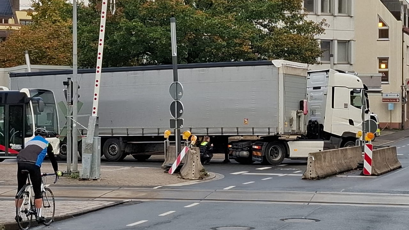 Der Schwerlaster krachte gegen die Betonbarrieren, beschädigte Verkehrsschilder und Laternen, während die Sperren selbst dem Aufprall weitgehend standhielten. Der Lkw verkeilte sich und blockierte die Zufahrt vollständig. „Die Betonsperren haben dem Druck standgehalten, sind aber leicht verrutscht. Der Laster steckte fest, nichts ging mehr“, erklärte Polizeipressesprecher Achim Reker. Der Unfall sorgte für Verkehrschaos im gesamten Innenstadtbereich. Die Weserbrücke war bis 10.30 Uhr voll gesperrt, der Verkehr staute sich in alle Richtungen. Der städtische Bauhof rückte an, um die Schäden zu beseitigen. Auch die Polizei war mit mehreren Streifenwagen im Einsatz und nahm die Ermittlungen auf.