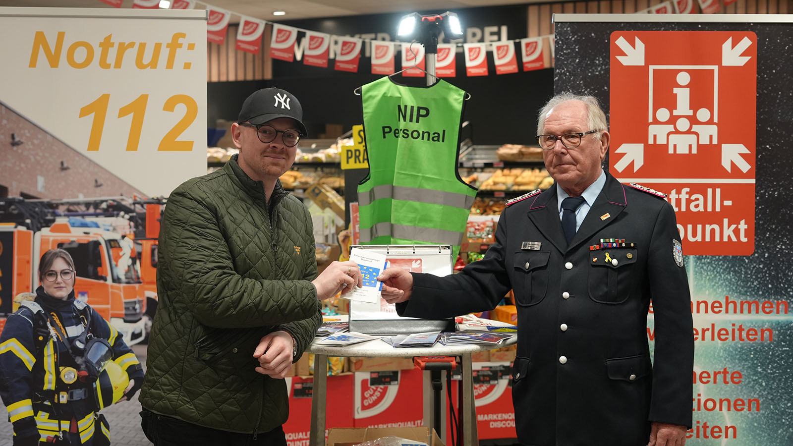 Feuerwehr informiert im Edeka Rinzda über richtige Notrufnummer