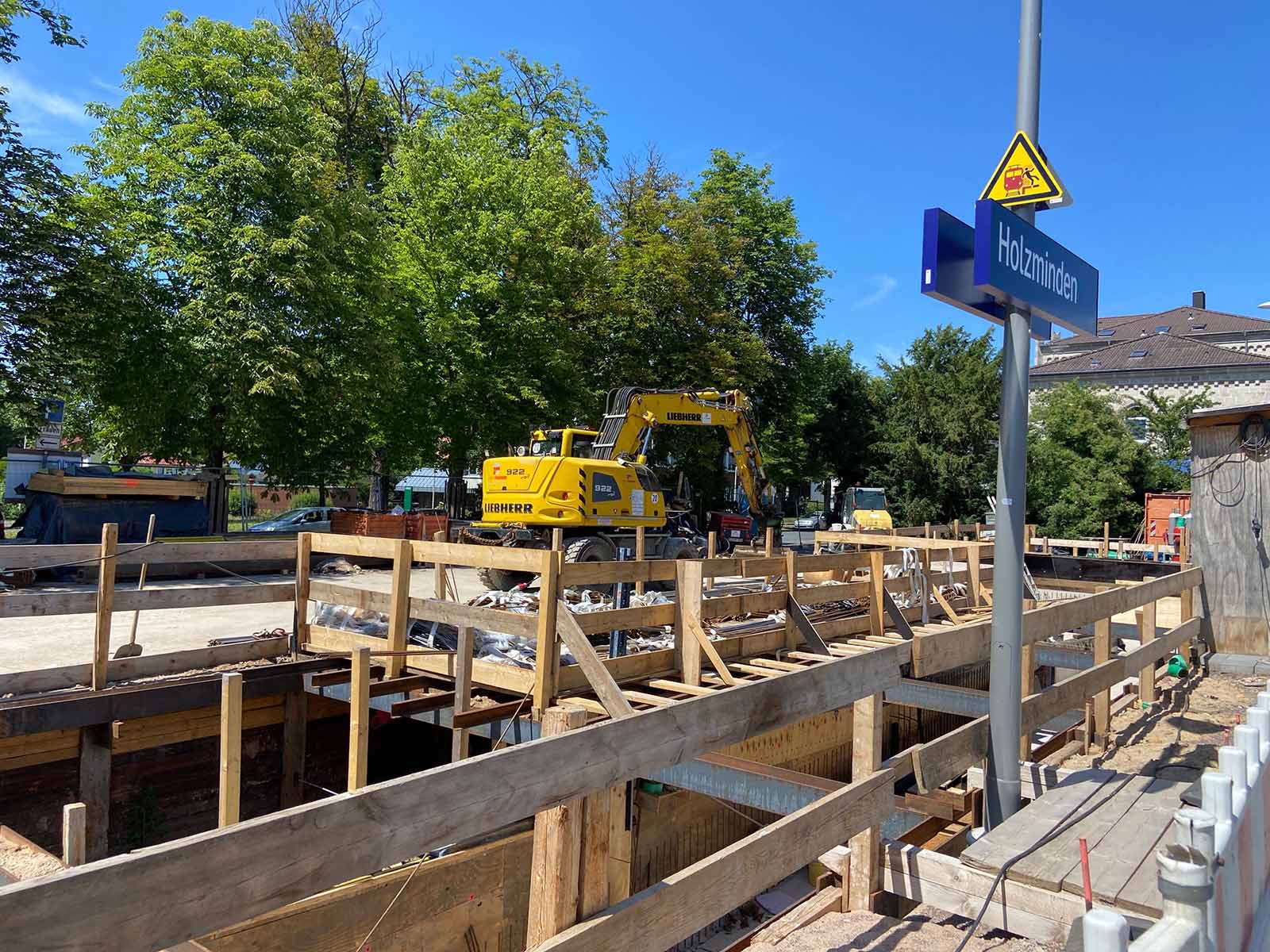 Holzminden (zir). Es rattert, hämmert und brummt: Am Bahnhof Holzminden laufen die Modernisierungsarbeiten weiterhin auf Hochtouren. Schon jetzt lassen sich die Konturen eines zeitgemäßen und barrierefreien Bahnhofs erkennen. Wie eine Sprecherin der Deutschen Bahn auf Anfrage der Redaktion erläuterte, sind die Bahnsteige vollständig modernisiert – ein sichtbares Zeichen des Fortschritts.