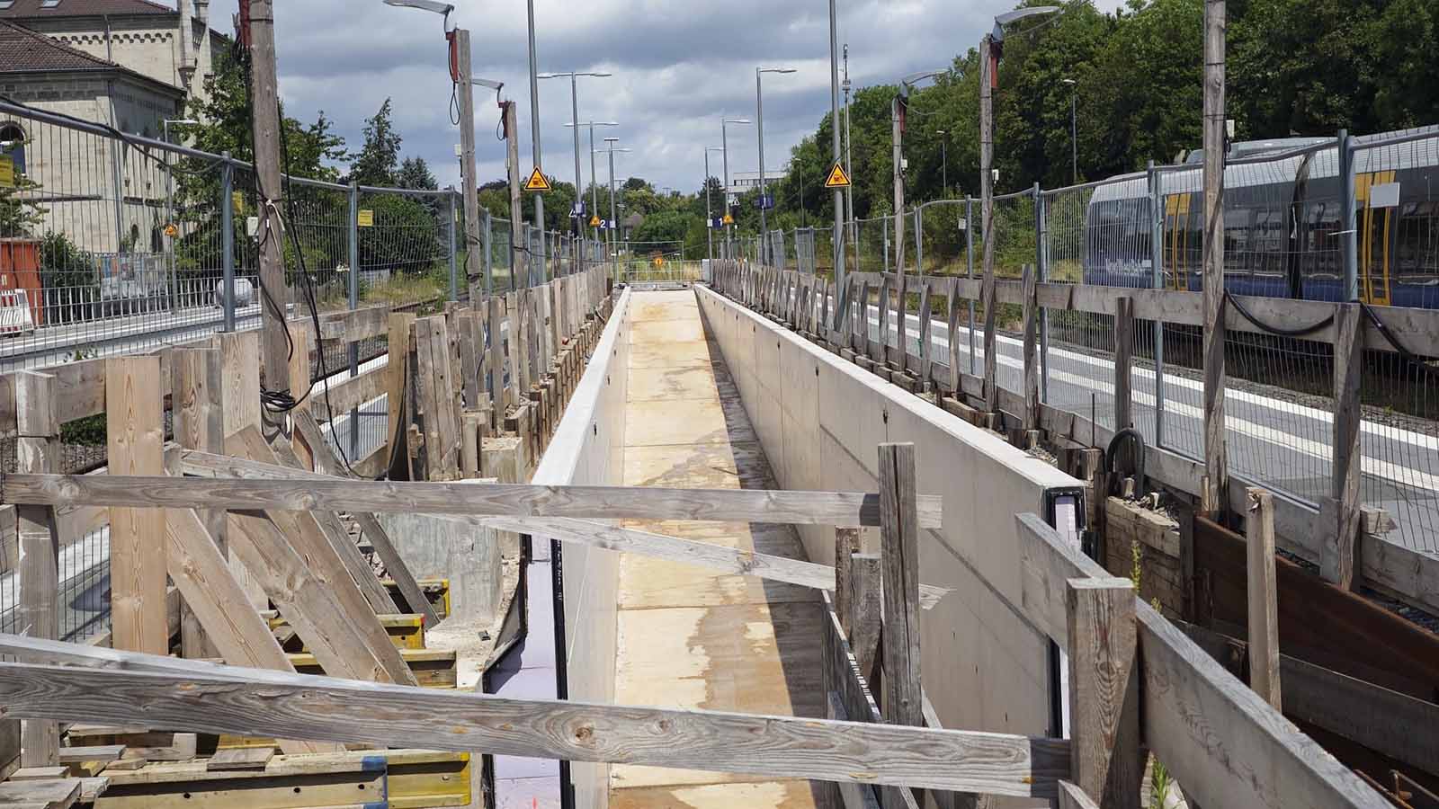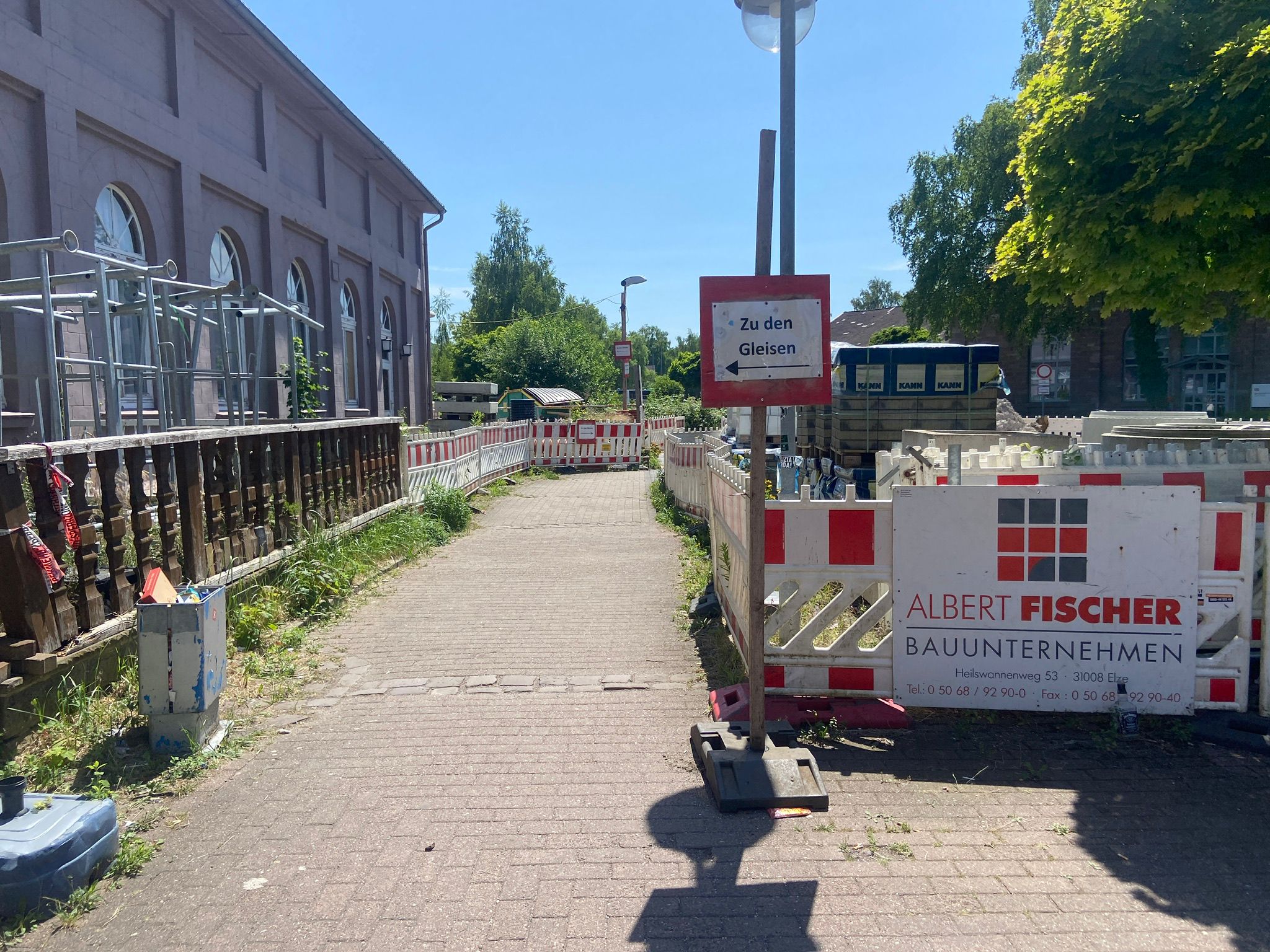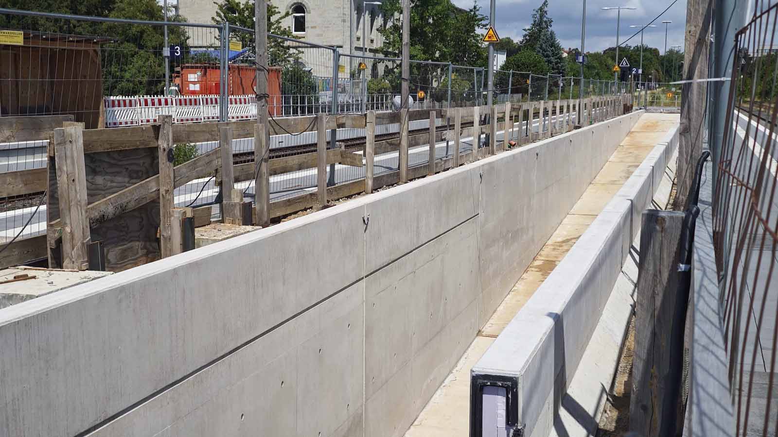 Ein deutliches Zeichen für den barrierefreien Ausbau ist die Rampe auf Höhe der Gleise 1 und 2, die bereits klar zu erkennen ist. In den kommenden Monaten sollen dort noch der Bodenbelag sowie das Geländer fertiggestellt werden.