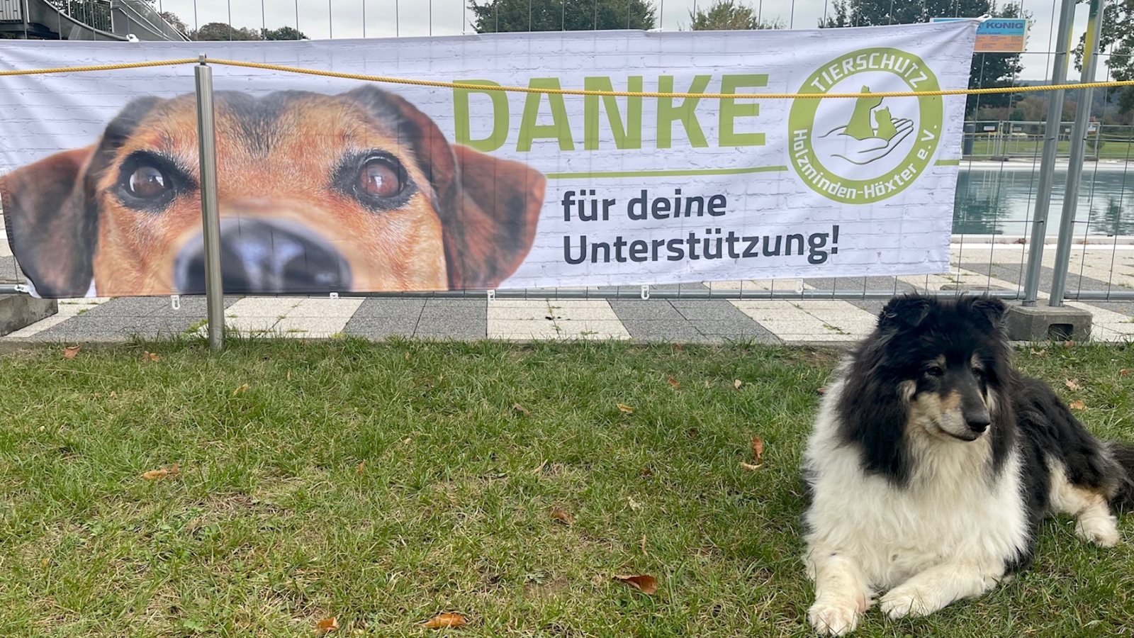 Der Eintrittserlös ging an das Tierheim Holzminden-Höxter e.V. und erbrachte eine Summe von 510,28 Euro. Den Spendenscheck nahmen Carsten Voß und Hendrik Hachenberg mit Hündin Zoe entgegen.