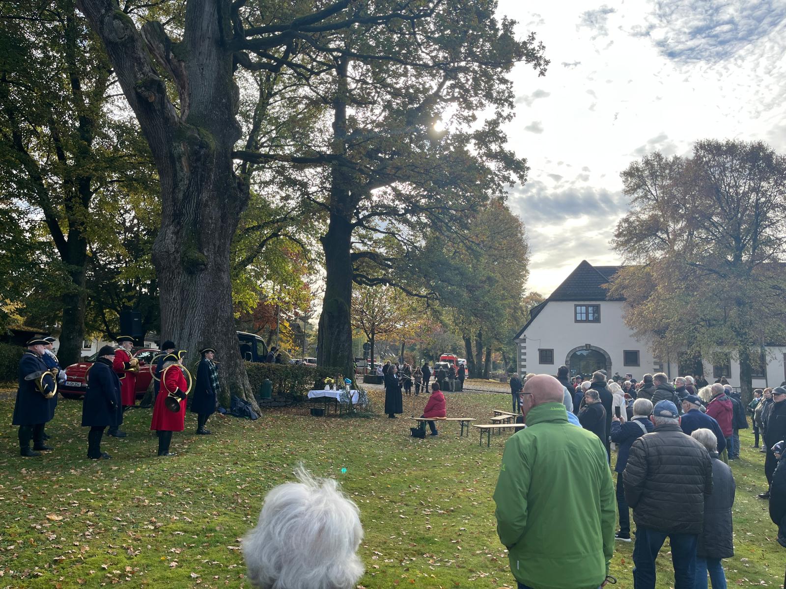 Der Tag startete um 11 Uhr mit einer Hubertus-Andacht. Dabei wurde unter anderem erklärt, dass der heilige Hubertus als Schutzpatron der Jagd gilt und so der Name der Reitjagd zustande kommt.