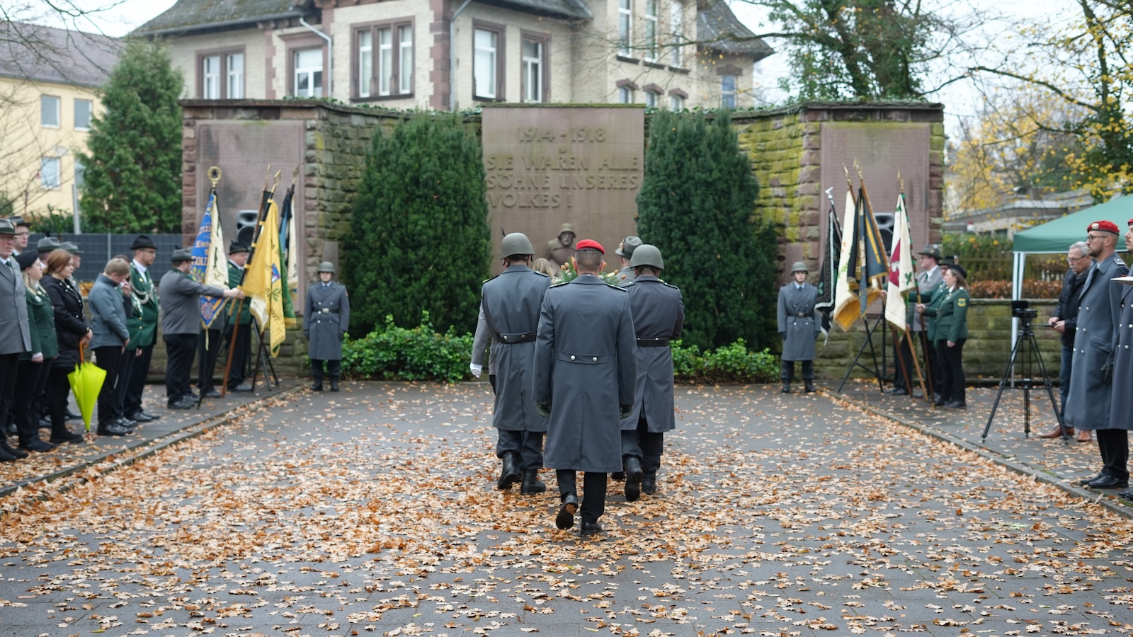 Superintendentin Christiane Nadjé-Wirth schloss sich mit einem Gebet an, bevor die Kränze am Ehrenmal niedergelegt wurden. Mit der Nationalhymne endete die Veranstaltung, woraufhin die Abordnungen der Schützen abrückten und sich die Teilnehmenden langsam zerstreuten.