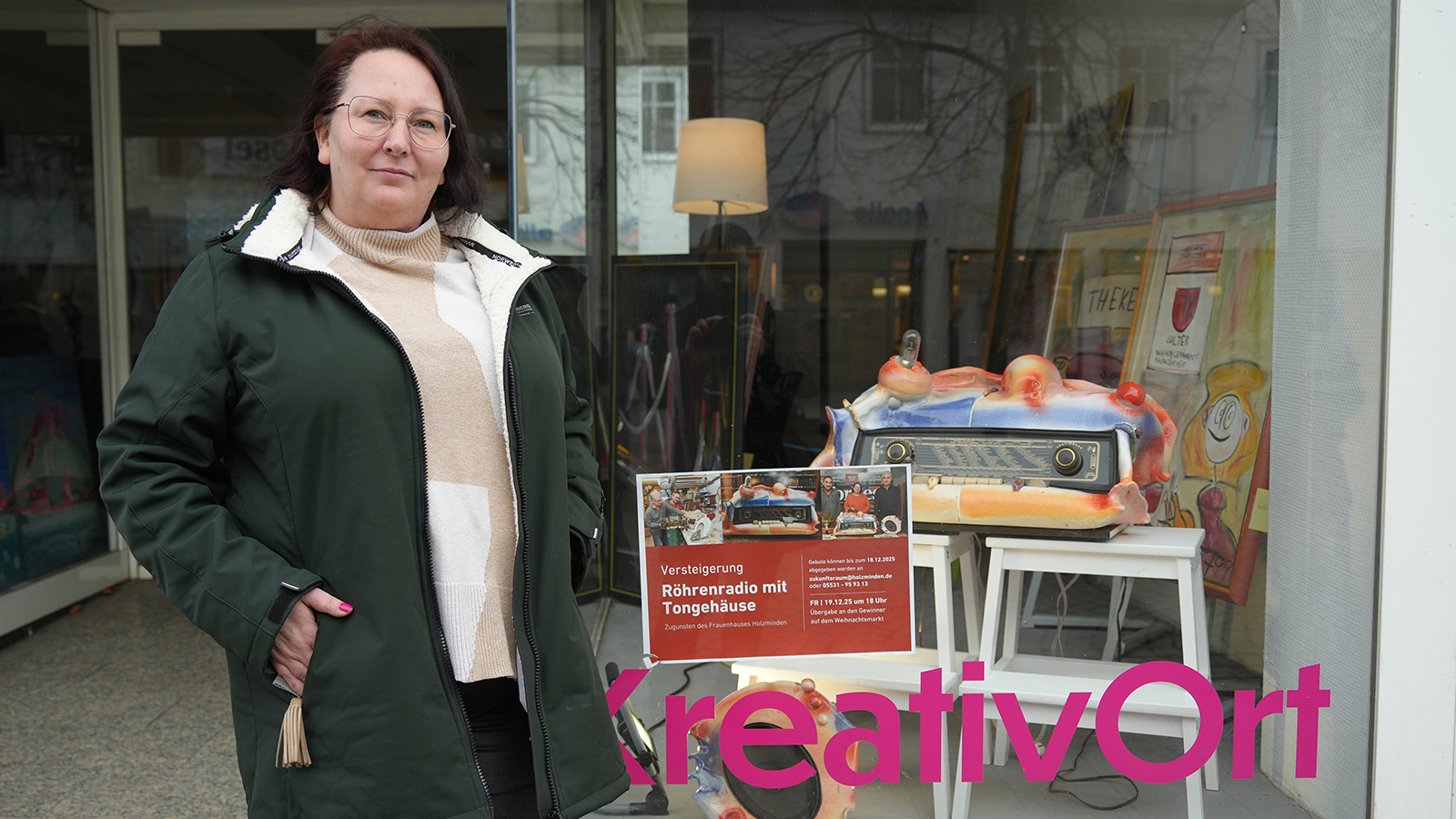 Der gesamte Erlös der Versteigerung soll dem Frauenhaus Holzminden zugutekommen. Um möglichst viele Menschen auf das Unikat aufmerksam zu machen, wird das Ton-Radio ab sofort im Zukunfts(T)Raum in der Oberen Straße 12 ausgestellt. Dort kann es nicht nur betrachtet, sondern auch probegehört werden. Gebote können direkt vor Ort abgegeben werden, das Startgebot liegt bei 500 Euro. Maike Riesenberg vom Zukunfts(T)Raum betont: „Das Radio hier auszustellen bietet sich perfekt an, da im Herzen der Innenstadt sehr viele Menschen daran vorbeilaufen. Auch andere Auktionen, die für den guten Zweck versteigert werden sollen, können hier immer gerne ausgestellt werden.“