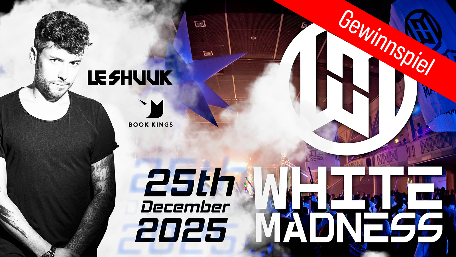 Holzminden. Am ersten Weihnachtstag verwandelt sich die Stadthalle Holzminden in einen pulsierenden Treffpunkt der elektronischen Musik: Das White Madness Blacklight Festival lädt am 25. Dezember ab 21 Uhr zu einer spektakulären Nacht ein. Im Mittelpunkt steht ein besonderer Gast – DJ Le Shuuk, der nach langer Pause wieder in Holzminden auftritt und gleichzeitig zwei Jahrzehnte auf den Bühnen der internationalen Elektroszene markiert.