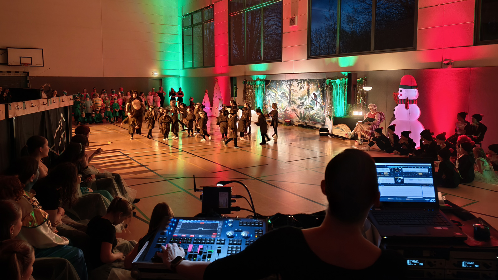 Ein solches Großprojekt wäre ohne zahlreiche helfende Hände nicht möglich gewesen. Ein besonderer Dank gilt dem kreativen Kopf hinter der Veranstaltung sowie den vielen freiwilligen Helferinnen und Helfern, darunter Conny, Svenja, Diana, Gabi, Nadine, Oliver, die Bühnentechnik, Detlef, Stefanie, Wolfgang, Justin, Philip sowie den vielen engagierten Eltern, die beim Nähen, Basteln und Färben unterstützt haben.