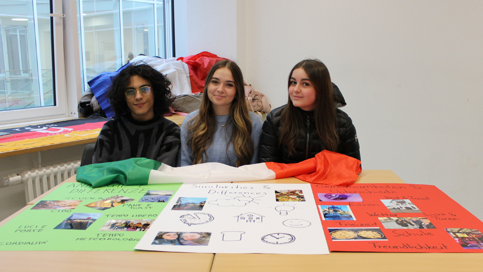 Zusammen mit ihren Austauschpartnerinnen und Austauschpartnern unterstützten die Gastschülerinnen die Erasmus-AG am Tag der offenen Tür. Dort gestalteten sie ein kleines Quiz zu Unterschieden und Gemeinsamkeiten zwischen deutschen und italienischen Jugendlichen und präsentierten ein gemeinsames Plakat mit Fotos aus den ersten beiden Aufenthaltswochen.