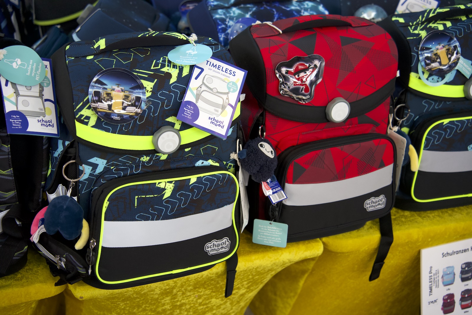 Zur Auswahl standen zahlreiche hochwertige Schulranzen renommierter Hersteller. Dazu zählten unter anderem Step by Step, Scout, ergobag, School Mood, Beckmann, DerDieDas, Lässig, satch und coocazoo. Ergänzt wurde das Angebot durch passendes Zubehör, sodass Familien einen umfassenden Überblick über aktuelle Modelle erhielten.