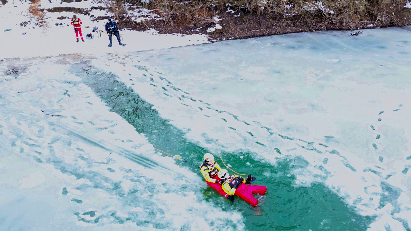 Neben der Einsatzvorbereitung nutzt die DLRG Holzminden das Thema Eistauchen auch zur Präventionsarbeit. Die aktuell frostige Witterung verleite viele Menschen dazu, zugefrorene Seen oder Bachläufe zu betreten. Doch selbst tragfähig wirkende Eisflächen könnten schnell brechen und lebensgefährliche Situationen verursachen.