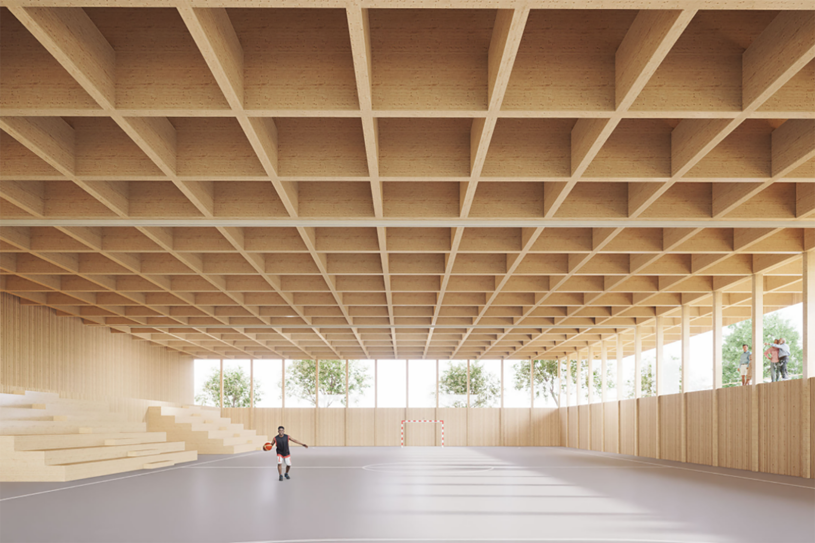 Die Halle soll überwiegend aus regionalen Baustoffen entstehen. Zudem ist eine Photovoltaik-Anlage in Kombination mit einem Gründach geplant. Für Veranstaltungen ist eine ausziehbare Tribüne mit rund 300 Sitzplätzen vorgesehen. Für diese Tribüne stellt die Stadt Holzminden einen Zuschuss in Höhe von 500.000 Euro bereit.