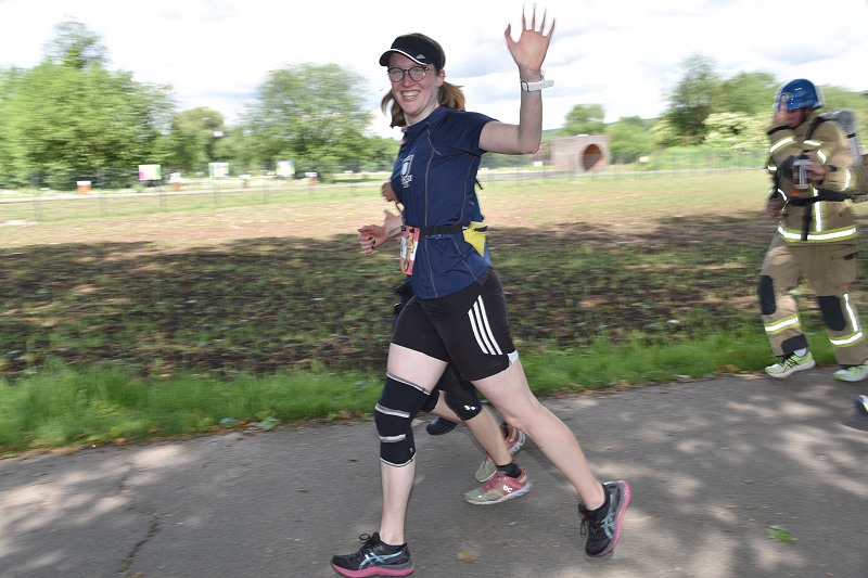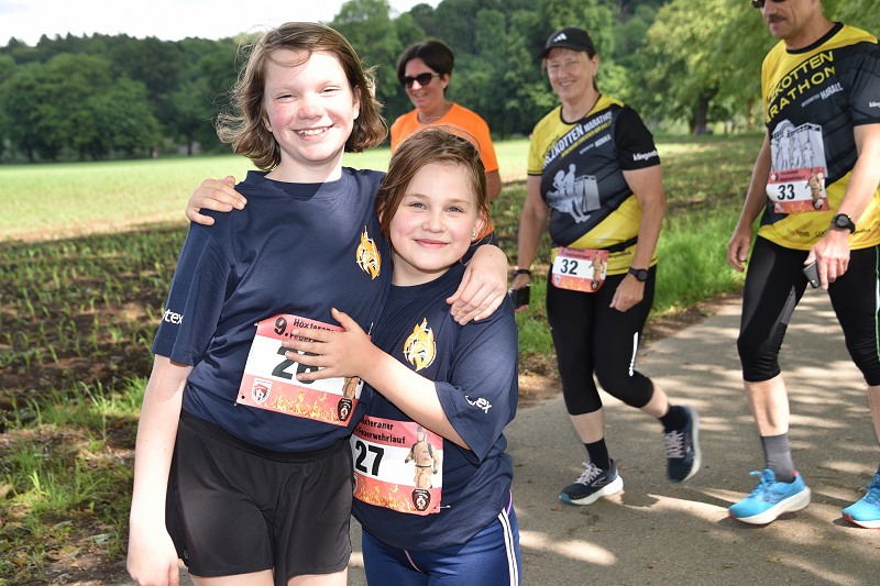 Vor dem eigentlichen Feuerwehrlauf beteiligten sich 125 Kinder an dem neu eingeführten „Bambini-Lauf“, der sich über eine Laufstrecke von etwa einem Kilometer erstreckte. „Kinder helfen Kindern“ - so kündigte Schmidt den Bambini-Lauf an. Der Startschuss für den darauffolgenden Feuerwehrlauf im Domänenhof fiel um genau 15:30 Uhr unter der Moderation von Markus Finger durch den bekannten Höxteraner Sportler Axel Czech. Die etwa sieben Kilometer lange malerische Strecke führte entlang des Weserbogens bis zum Pier1 an der Stummrigen Straße und wieder zurück zum Domänenhof in Corvey. Feuerwehrleute liefen in ihrer schweren Einsatzkleidung und unter Atemschutzgeräten mit. Größte Gruppe war das Fitness-Center LangeFit mit 51 Teilnehmenden, gefolgt von „Alhausen Läuft“ mit 40 Personen. Der diesjährige Feuerwehrlauf knackte erneut die Marke von 500 Läuferinnen und Läufern. Kevin Lux von der Löschgruppe Bredenborn war der 500. Teilnehmer, der sich spontan dazu entschieden hatte, mitzulaufen ohne eine Voranmeldung. Insgesamt waren 501 Läuferinnen und Läufer beim eigentlichen Feuerwehrlauf über sieben Kilometer Strecke mit am Start. Es gab auch einen ältesten Teilnehmer: Ludger Weinholz von den Charity Runners war mit seinen über 80 Jahren im Mittelfeld aller Läuferinnen und Läufer zu finden. Die Teilnehmenden kamen zumeist aus der Region, sie reisten aber auch aus ganz Deutschland zum Feuerwehrlauf an. Erstmalig neben sämtlichen Hilfsorganisationen mit dabei war auch die Bundeswehr, teilweise unter ABC-Maske, begleitet vom Höxteraner Kommandeur Michael Gorzolka.