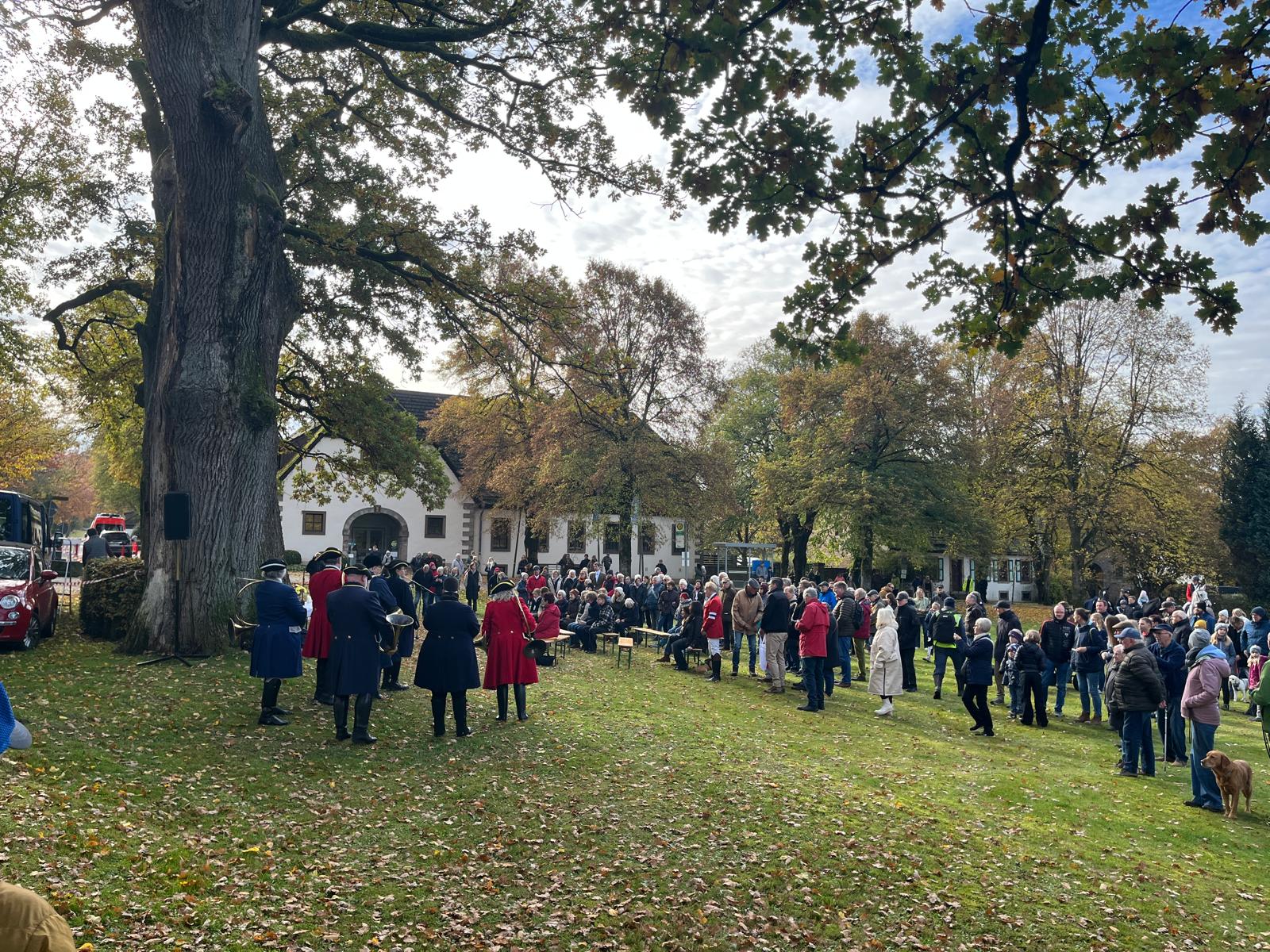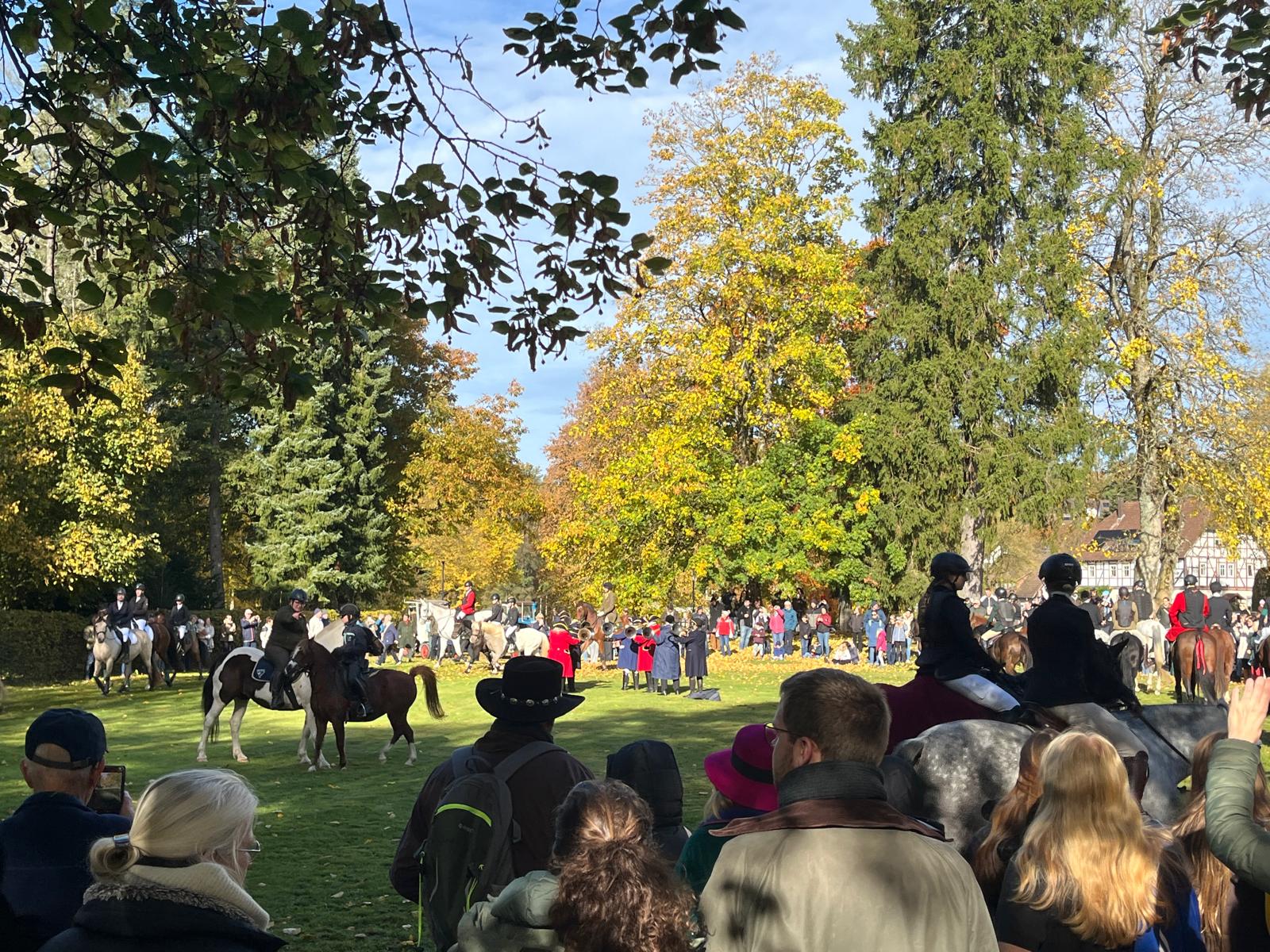 Der Tag startete um 11 Uhr mit einer Hubertus-Andacht. Dabei wurde unter anderem erklärt, dass der heilige Hubertus als Schutzpatron der Jagd gilt und so der Name der Reitjagd zustande kommt.
