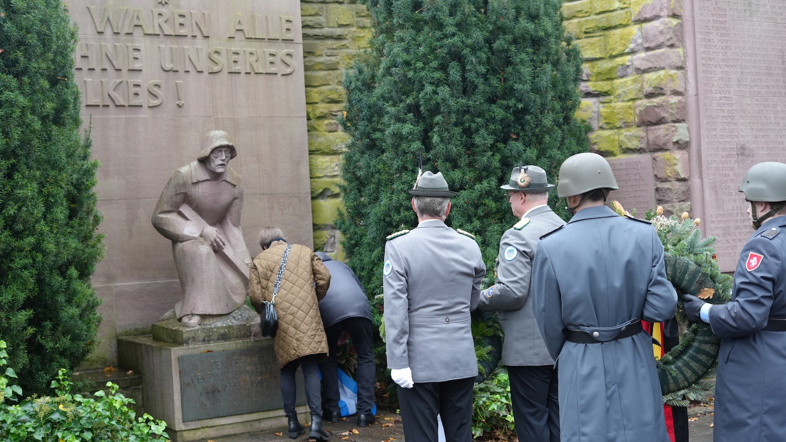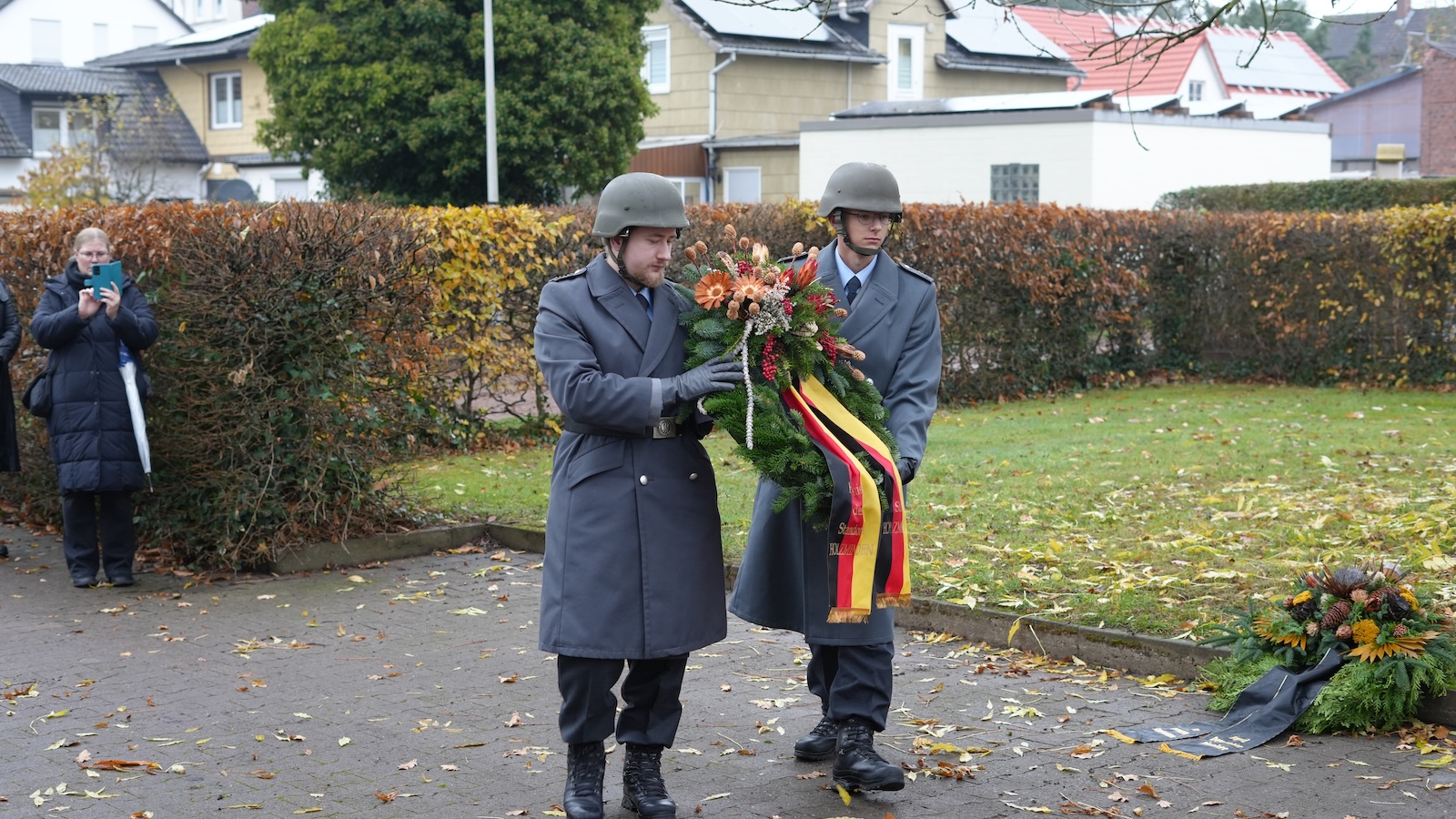 Holzminden (red). Am Sonntag fand in Holzminden die zentrale Gedenkveranstaltung zum Volkstrauertag am Ehrenmal an der Fürstenberger Straße statt. Vertreterinnen und Vertreter der Stadt sowie Abordnungen der Arbeitsgemeinschaft der Holzmindener Schützen, des Panzerpionierbataillons 1 der Pionierkaserne, der Reservistenkameradschaft Holzminden sowie Bürgerinnen und Bürger nahmen daran teil und legten Kränze nieder.