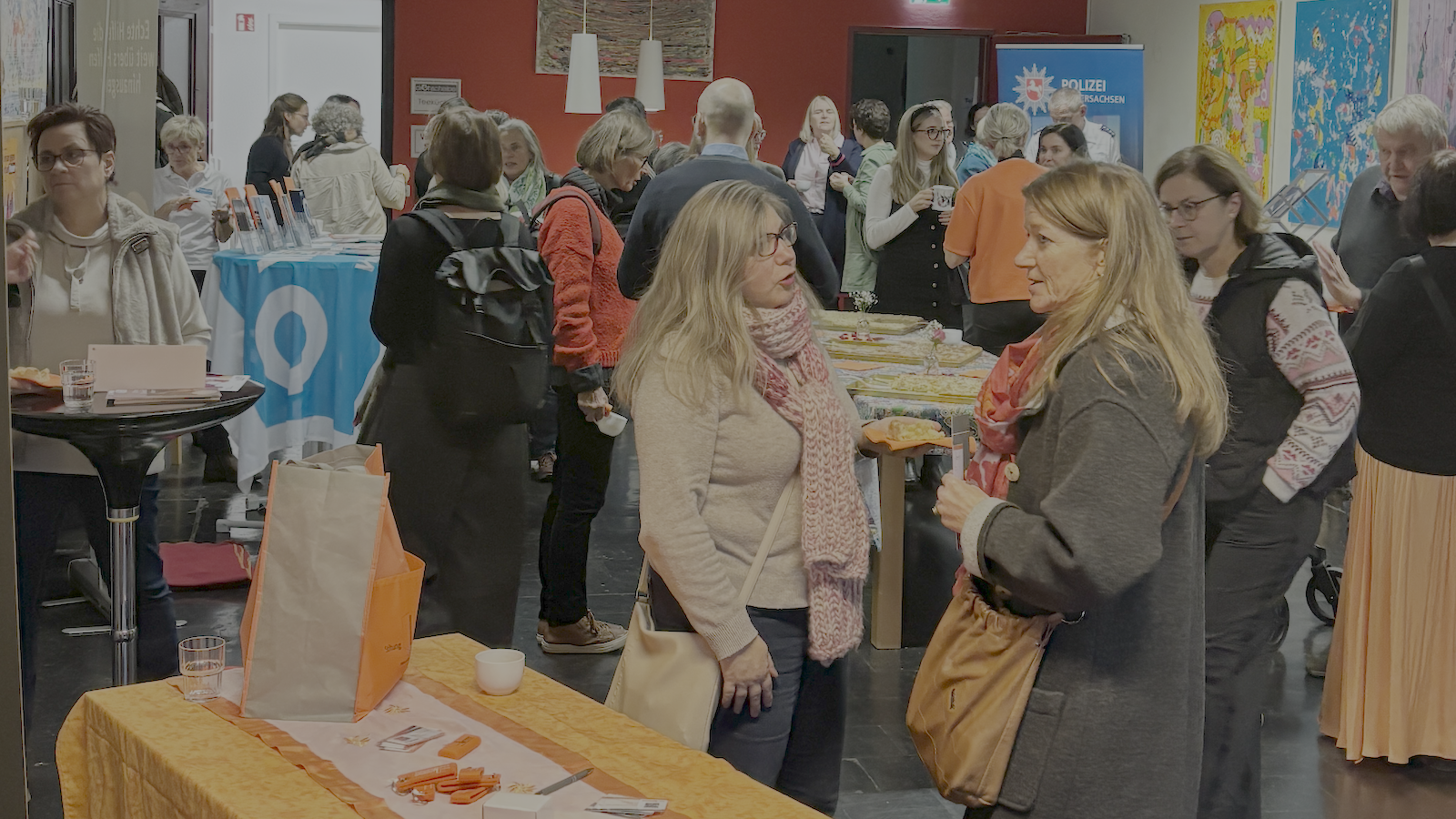 Den Auftakt bildete ein bewusst gewähltes „Kaffeekränzchen“ – ein geschützter Raum für Austausch und Zuhören. Der Begriff erinnerte daran, dass solche Runden früher zu den wenigen Orten gehörten, an denen Frauen offen sprechen konnten. Heute solle er zeigen, wie bedeutsam Respekt, Solidarität und gegenseitiges Zuhören seien, um antifeministischen Tendenzen entgegenzutreten. Im Eingangsbereich präsentierten verschiedene Einrichtungen ihre Beratungsangebote. Im Anschluss erläuterte eine Vertreterin der Amadeu Antonio Stiftung die zunehmende Verbreitung antifeministischer Haltungen und deren konkrete Auswirkungen. Sie ging darauf ein, wie Antifeminismus und Gewalt zusammenhängen und welche Handlungsmöglichkeiten bestehen, um sich dagegen zu wehren.
