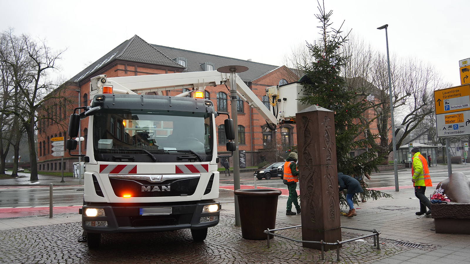 Holzminden (zir). Der „Little Ugly Christmas Tree“, der im Dezember für Aufmerksamkeit weit über die Stadtgrenzen hinaus sorgte, ist am Mittwochmorgen ordnungsgemäß abgebaut worden. Aufgrund der Witterung erfolgte der Rückbau etwas später als ursprünglich geplant. Der kleine, schmale Weihnachtsbaum entwickelte sich trotz – oder gerade wegen – seines ungewöhnlichen Erscheinungsbildes zu einem „großen Thema“ in Deutschland und stand für Zusammenhalt, Gemeinschaft und Engagement in der Stadt.