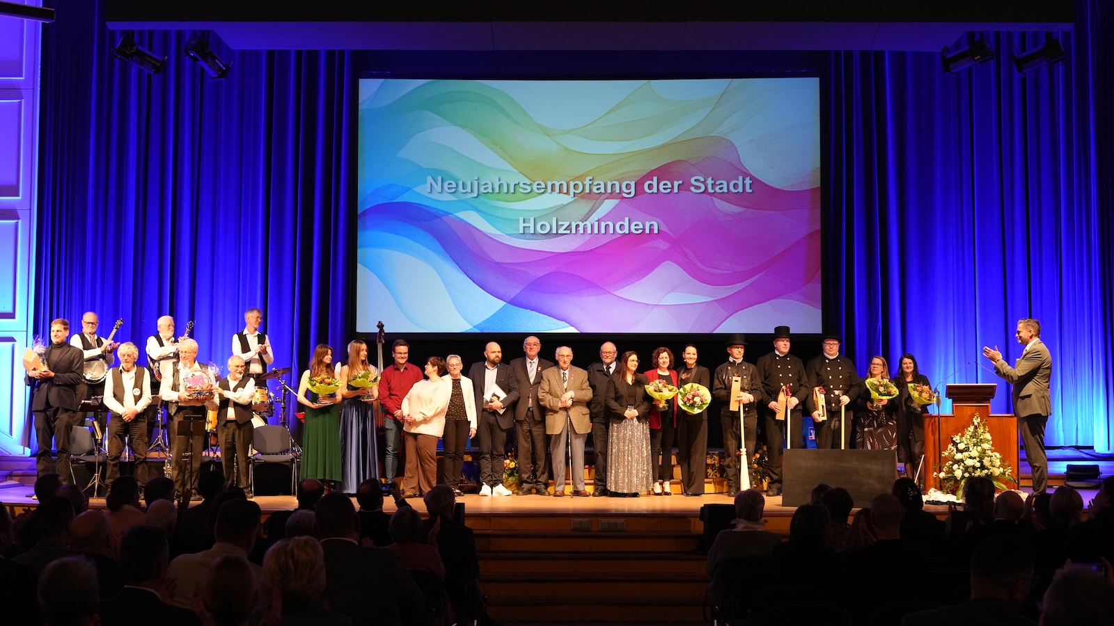 Holzminden (awin). Mehr als 450 geladene Gäste aus Politik, Wirtschaft, Ehrenamt, Vereinen, Organisationen und Unternehmen haben am Sonntag am Neujahrsempfang der Stadt Holzminden in der Stadthalle teilgenommen. Ehrungen, Reden, Foto- und Videovorführungen sowie ein reger Austausch sorgten für eine informationsreiche und gelungene Veranstaltung.