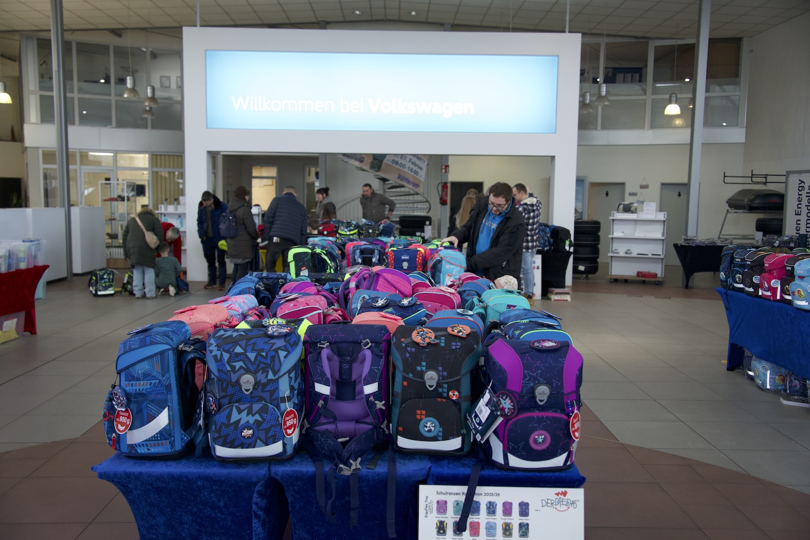 Holzminden (lbr). Mehrere hundert Eltern und ihre Kinder nutzten am vergangenen Samstag die Gelegenheit, im Autohaus Vatterott einen passenden Schulranzen für den bevorstehenden Schulstart zu finden. Gemeinsam mit dem Fachhändler Ranzenmaxx hatte das Unternehmen zur Schulranzenparty eingeladen und verwandelte das VW-Gebäude zwischen 9 und 16 Uhr zu einer Shopping-Meile. Das Team von Ranzenmaxx nahm sich dabei für jedes Kind ausreichend Zeit und beriet gezielt zu Ergonomie, Passform und Tragekomfort.