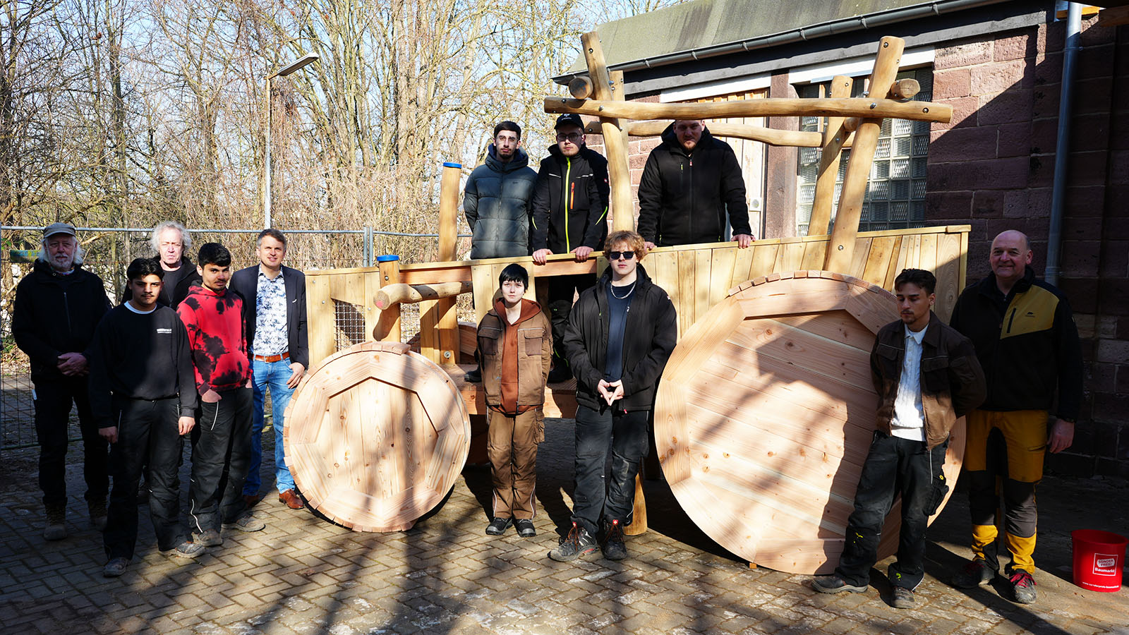 Seit mehreren Wochen arbeiten zwei Gruppen mit jeweils vier Jugendlichen gemeinsam mit Pädagoginnen und Pädagogen an der Umsetzung des Projekts. Bislang wurden jeweils vier Wochen für das Grundgerüst und für die Räder benötigt. Neben handwerklichem Geschick sei dabei auch Durchhaltevermögen gefragt.