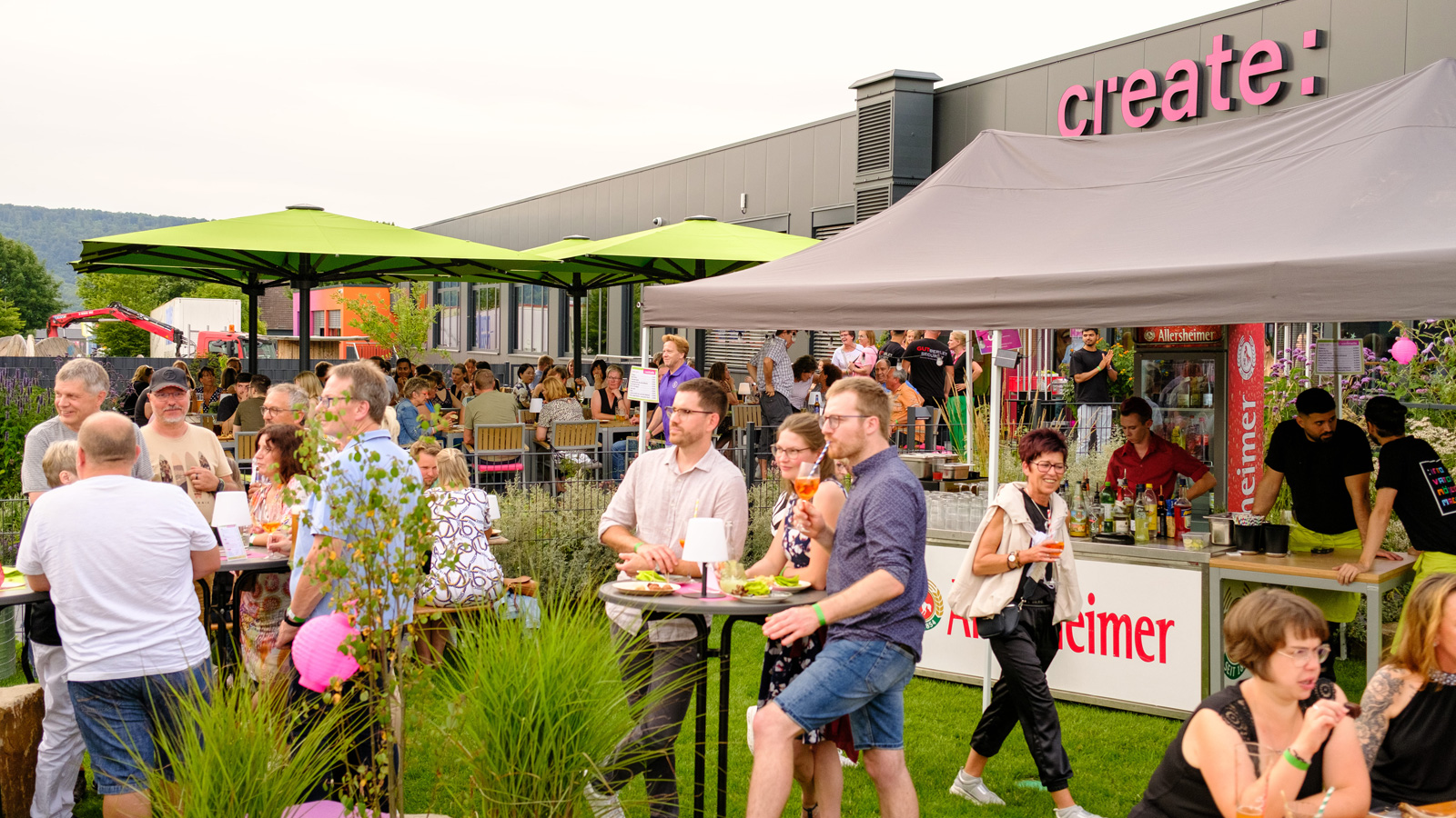 Auch die Umgebung trägt zur besonderen Stimmung bei. Bei gutem Wetter wird der create:hub mit Terrasse und Gartenoase zur passenden Kulisse für entspannte Stunden unter freiem Himmel. Ergänzt wird das Angebot durch einen klassisch inspirierten Frühschoppen-Teller, der das kulinarische Erlebnis abrundet.