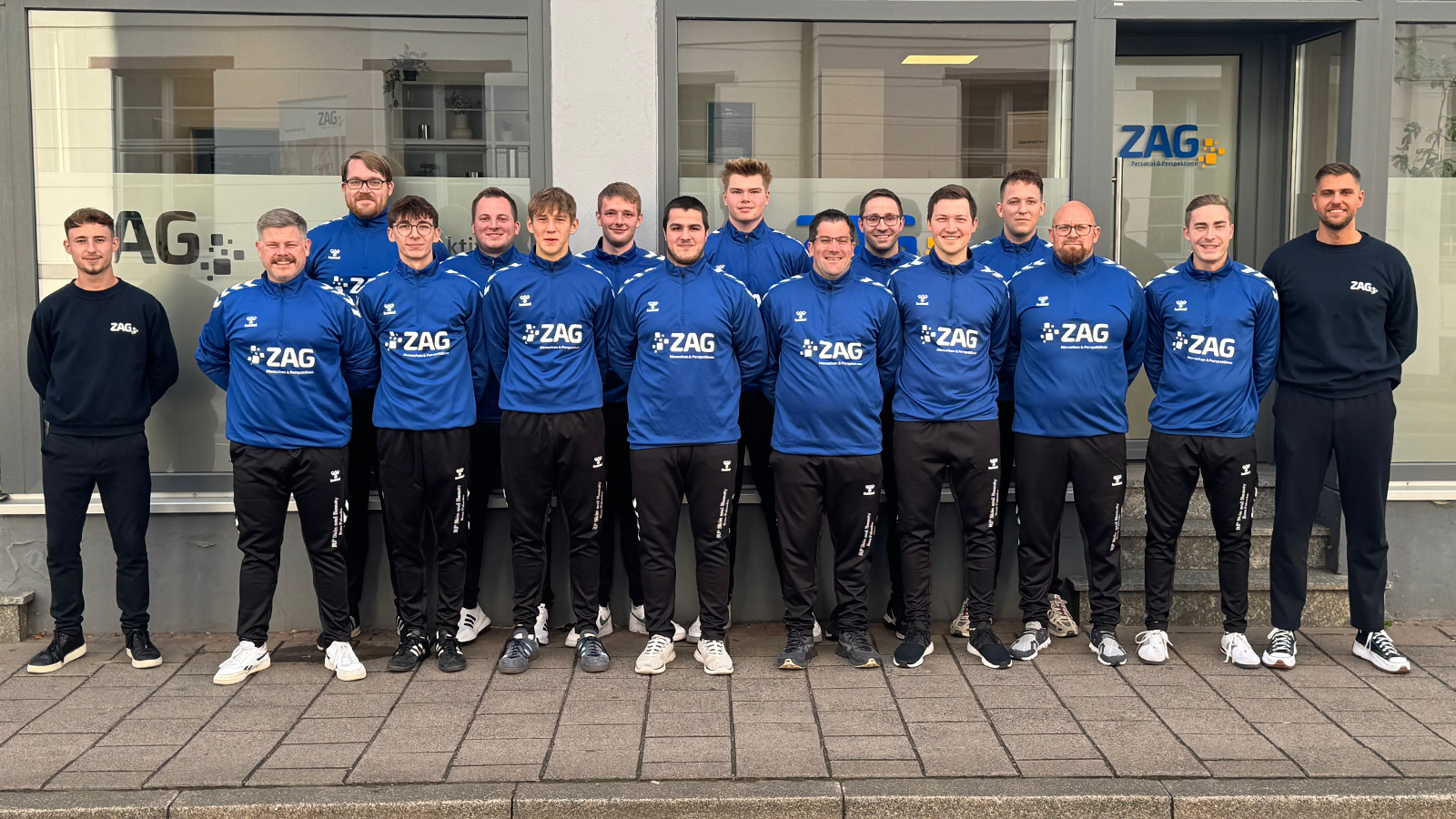 Landkreis Holzminden (red). Pünktlich zum Saisonstart präsentierte die 1. Herrenmannschaft der HSG Solling ihre neuen Trainingsanzüge. Gesponsert wurden diese von der ZAG-Niederlassung Holzminden, die von Lennard Liebrecht geleitet wird. Bei einem Fototermin vor Ort bedankte sich die Mannschaft persönlich. „Hier ist ein Riesenprojekt gestartet, das wir sehr gerne unterstützen“, erklärte Liebrecht.